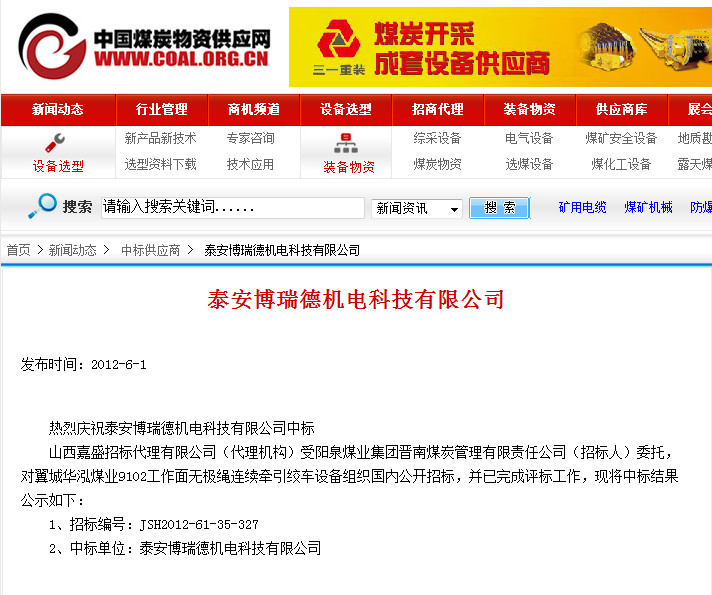 2、中標(biāo)單位:泰安博瑞德機電科技有限公司